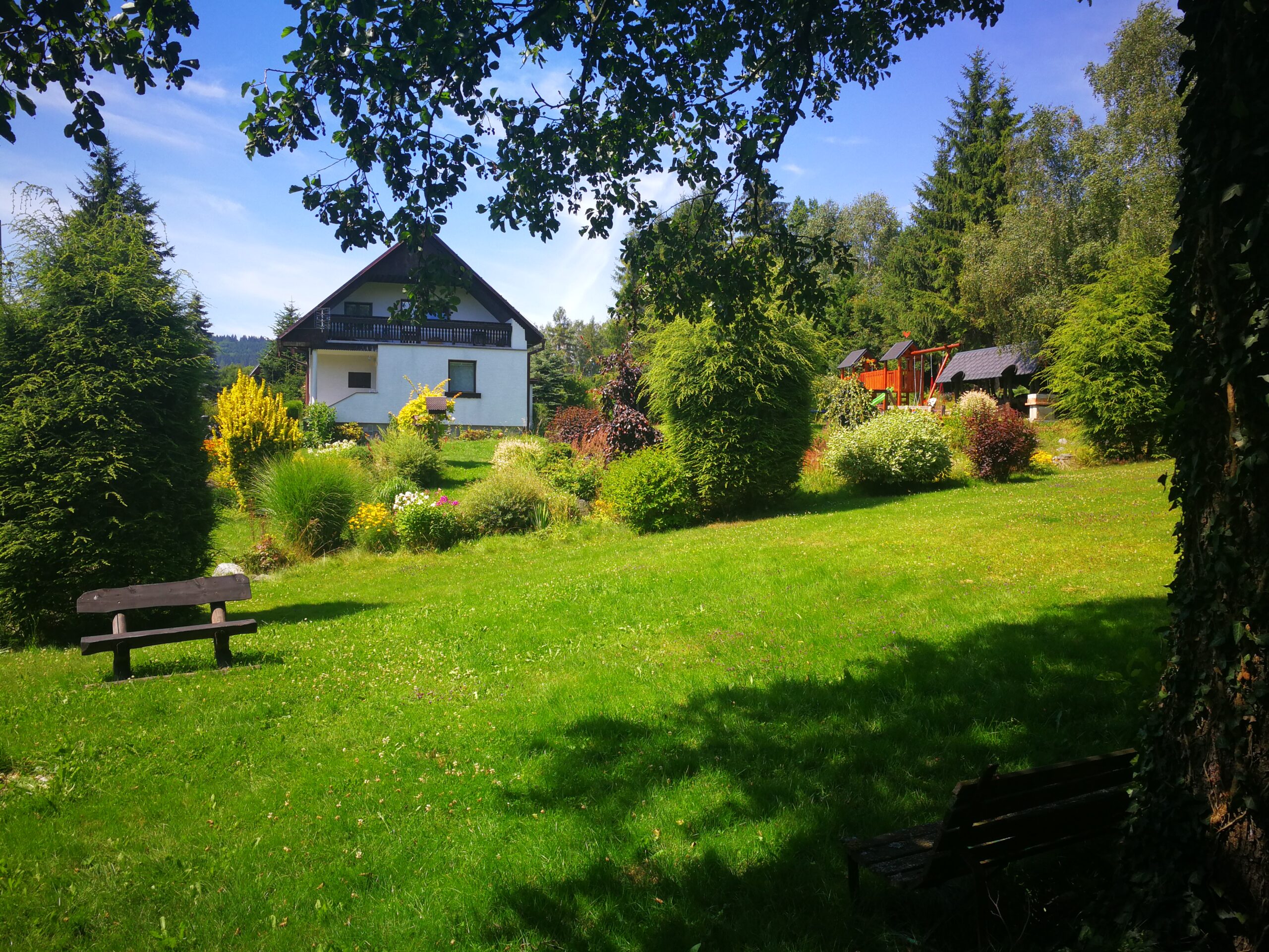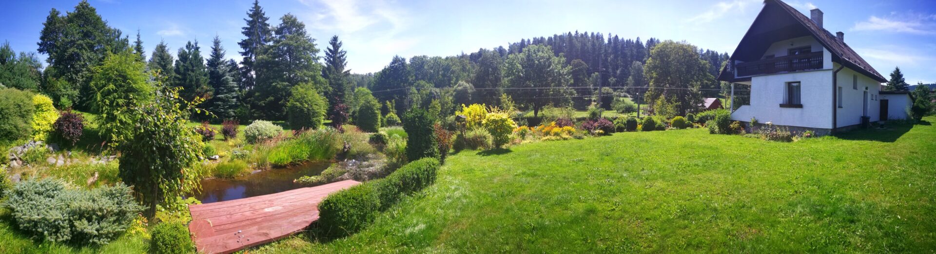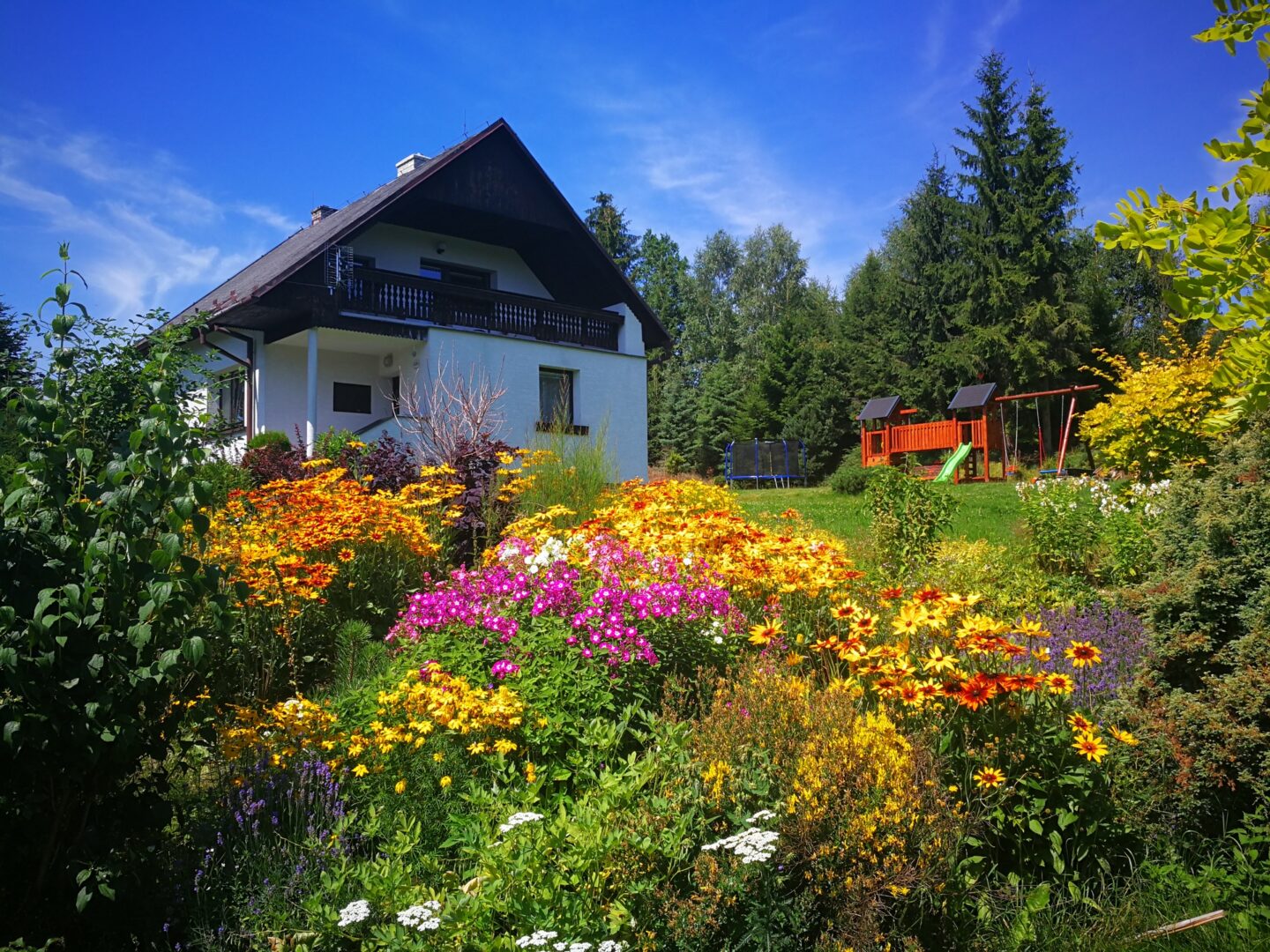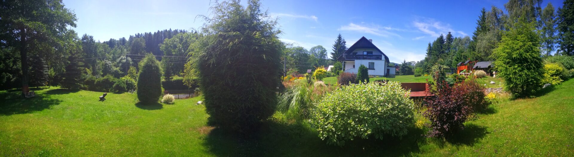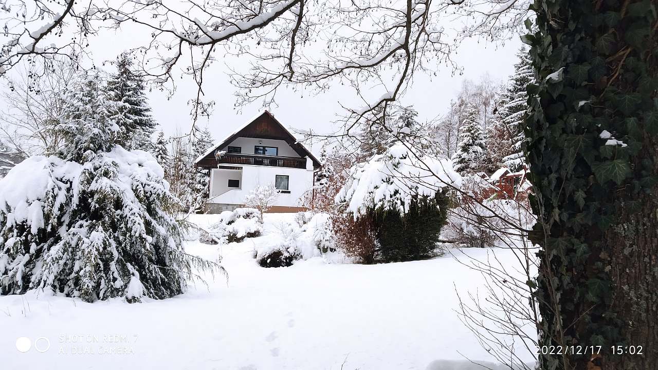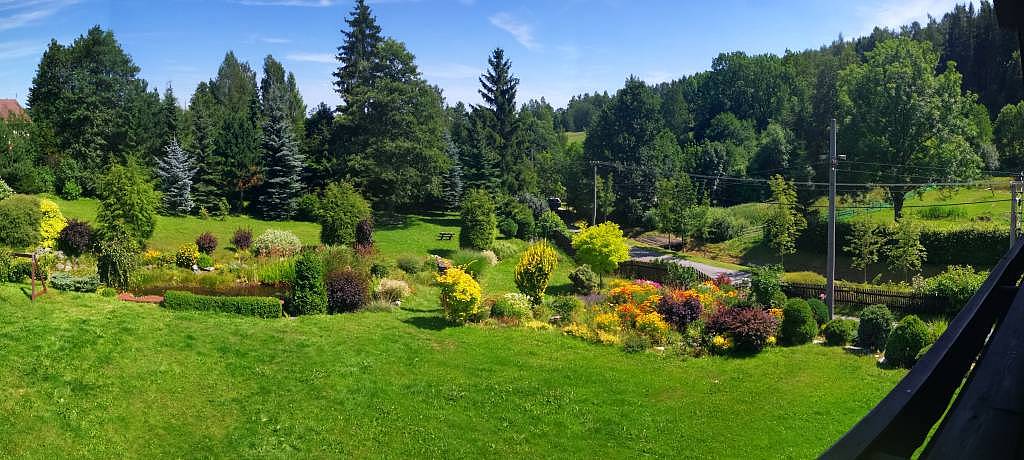 Prozkoumejte naši chatu od pokojů v patře, přes útulný obývací prostor v přízemí, až po sklep a nakonec si vychutnejte pohled na krásnou zahradu.