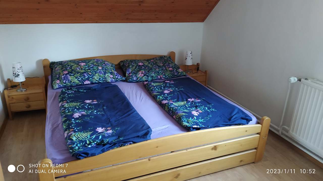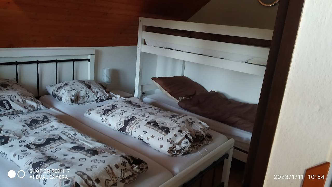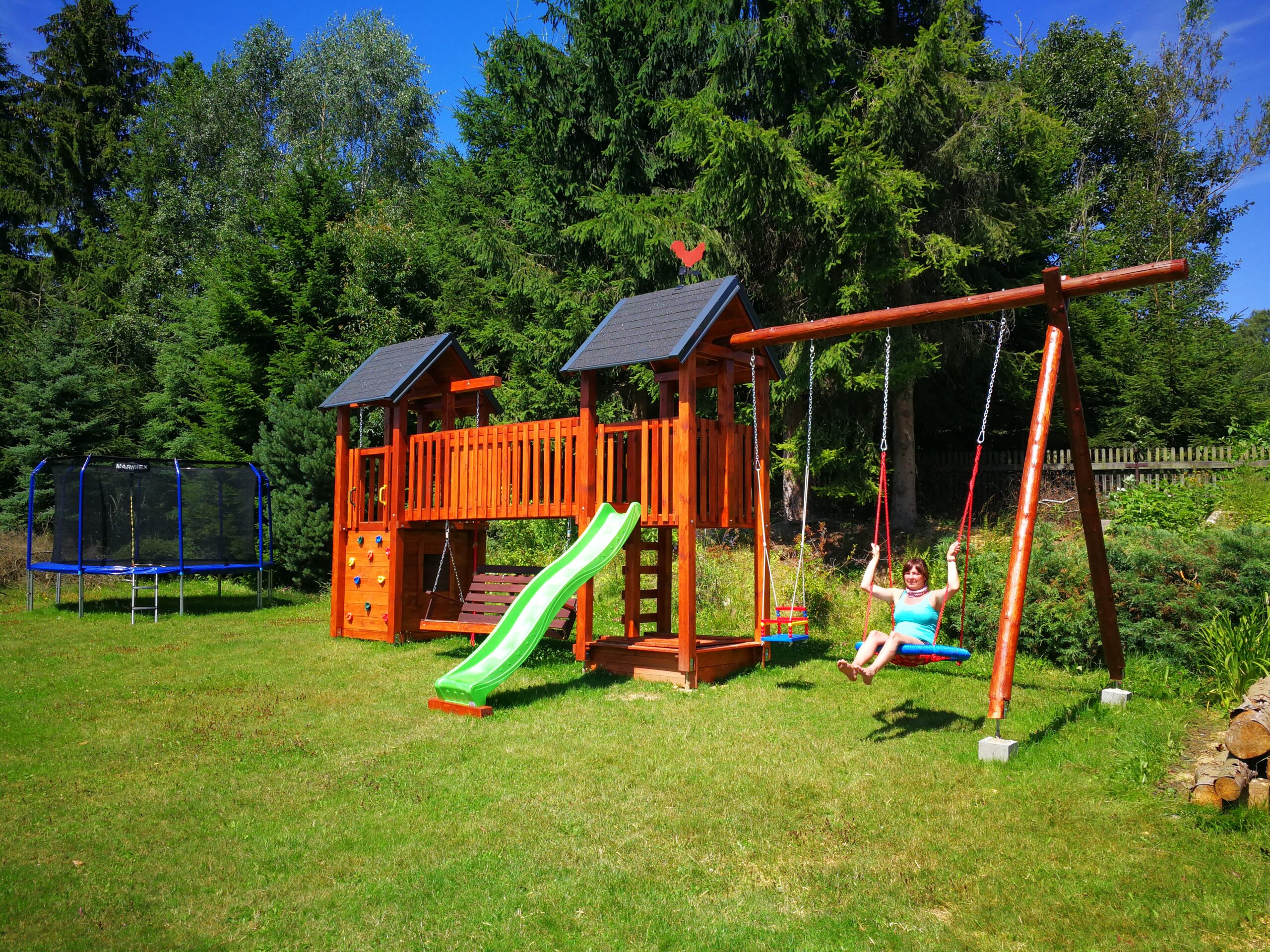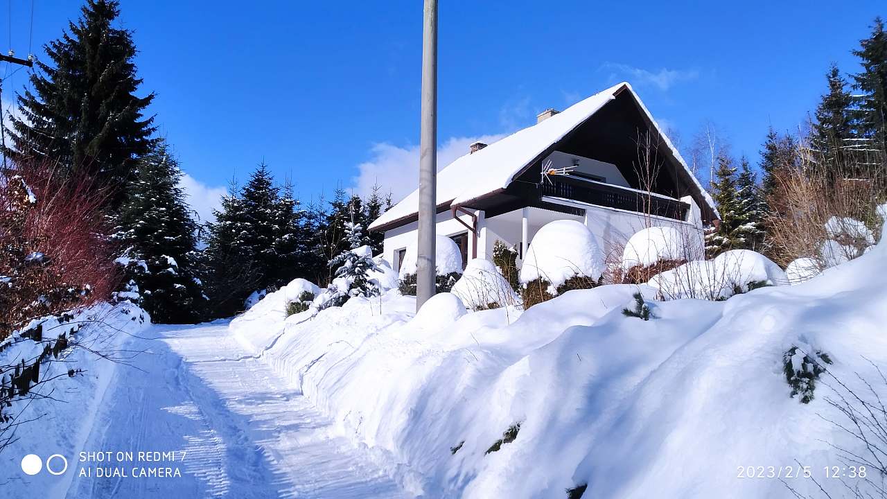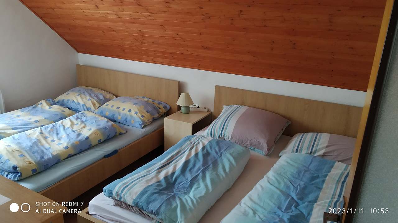 Prozkoumejte naši chatu od pokojů v patře, přes útulný obývací prostor v přízemí, až po sklep a nakonec si vychutnejte pohled na krásnou zahradu.