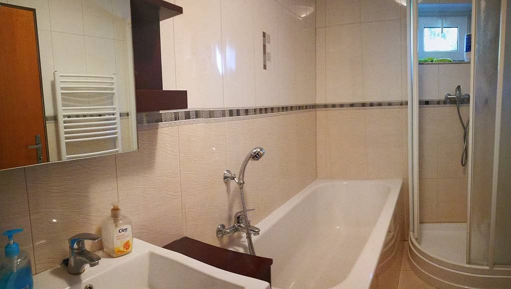 Součástí přízemí je také koupelna s vanou i sprchovým koutem, samostatné WC a chodba se schodištěm vedoucím do patra.